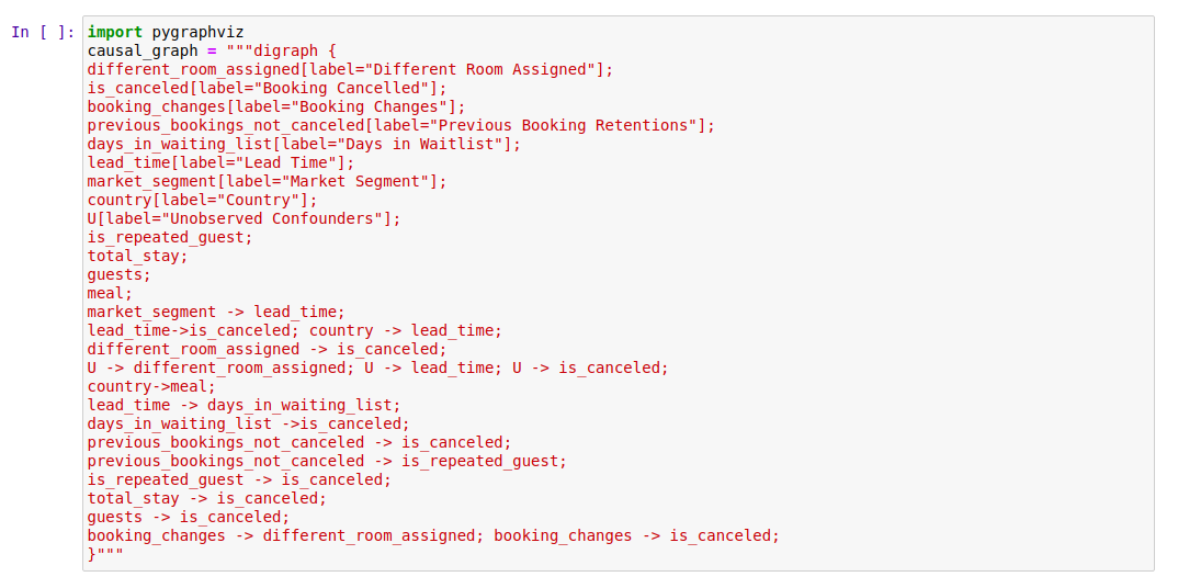 하지만 예약 변경 횟수만 유일한 혼란 변수일까요? 만약 데이터셋에 정보가 없는 관측되지 않은 혼란 변수(unobserved confounders)가 있다면 어떨까요? 우리는 여전히 같은 주장을 할 수 있을까요? 여기서 DoWhy라는 도구가 등장합니다! 🛡️