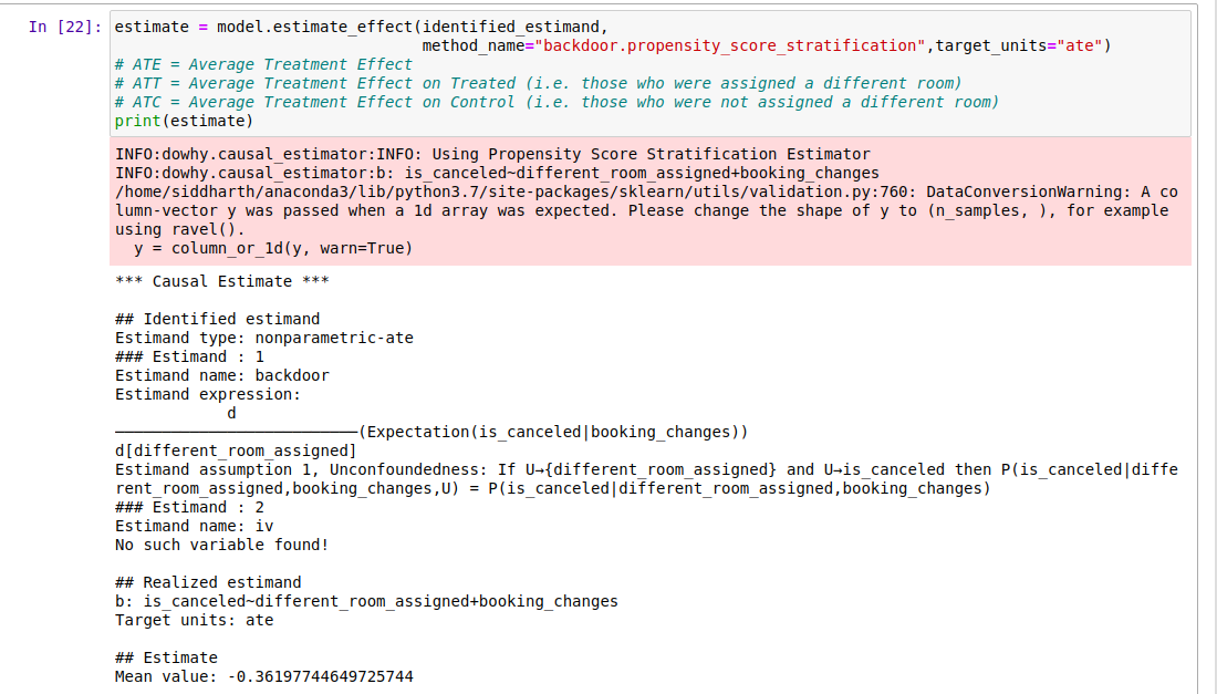 인과 효과는 처리의 단위 변화에 따라 결과가 변하는 크기입니다. 추정은 통계적 절차이기 때문에 다른 단계보다 비교적 간단합니다. DoWhy는 식별된 인과 추정치를 계산하는 데 사용할 수 있는 여러 방법을 제공합니다.