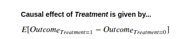 "다른 모든 것을 일정하게 유지"하는 것은 반사실적(Counterfactual) 세계를 상상함으로써 이해할 수 있습니다. 이 세계에서는 처리가 도입된 시점까지 모든 것이 동일했지만, '실제' 세계에서는 처리가 제공되었고, '반사실적' 세계에서는 제공되지 않았습니다. 따라서 우리가 관찰하는 결과의 어떤 변화든 오로지 처리 때문이라고 볼 수 있습니다.